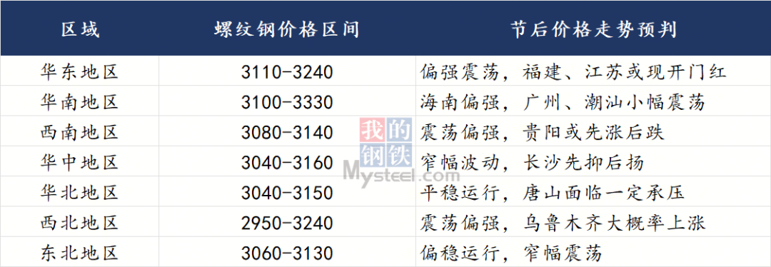 區(qū)域方面,庫存壓力集中于華東、華北部分城市,華南、西南多數(shù)區(qū)域庫存整體可控,這種分化格局將直接影響節(jié)后各區(qū)域價格走勢。四、市場心態(tài):謹慎樂觀為主,分歧聚焦需求復(fù)蘇全國廠商整體心態(tài)謹慎樂觀,多空邏輯交織。從看漲市場來看,主要集中于華東、西南等區(qū)域,成本支撐、低庫存以及旺季預(yù)期是其核心支撐因素;而市場觀望客戶主要擔憂節(jié)前期螺回落、需求未啟動、部分區(qū)域累庫等原因,主要集中于華北、東北等地區(qū)。五、總結(jié)2026 年春節(jié)期間,全國建筑鋼材市場價格平穩(wěn),區(qū)域分化顯著,廠商心態(tài)謹慎樂觀。支撐節(jié)后市場的核心因素包括:供應(yīng)端復(fù)產(chǎn)偏緩、成本端政策支撐、需求端旺季預(yù)期及整體低庫存格局;但需求復(fù)蘇面臨近期寒潮天氣、上半年需求下滑等約束,部分區(qū)域廠庫壓力也可能加劇供需矛盾。預(yù)計節(jié)后市場將呈現(xiàn)震蕩運行走勢,行情持續(xù)性依賴需求實際釋放強度。操作上仍需謹慎,重點關(guān)注元宵節(jié)后工地復(fù)工率、需求釋放、鋼廠復(fù)產(chǎn)及碳交易政策執(zhí)行落地情況。